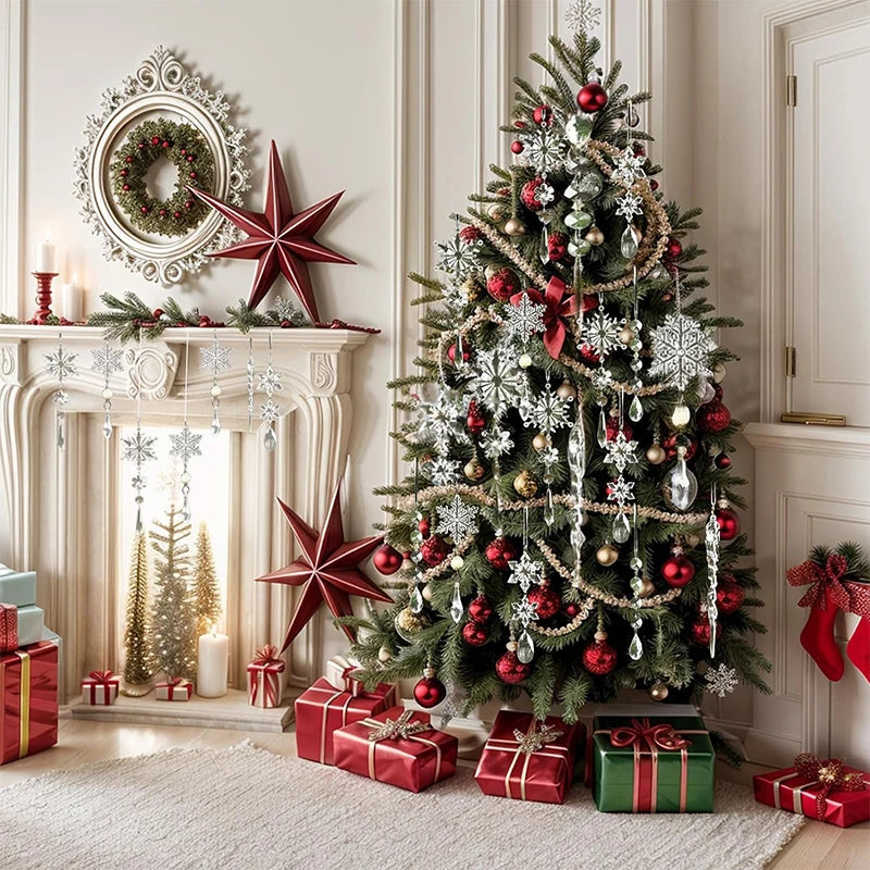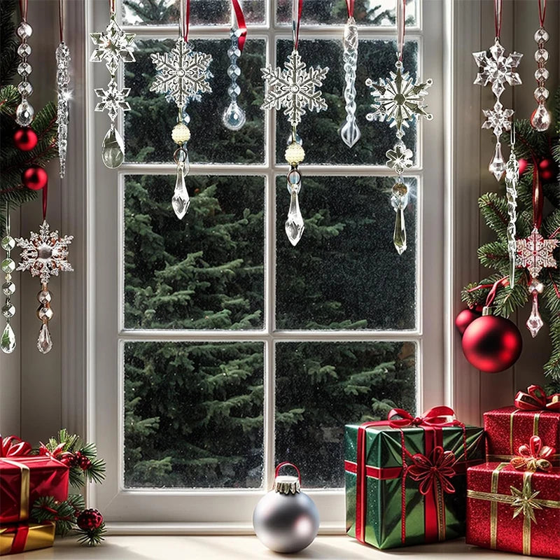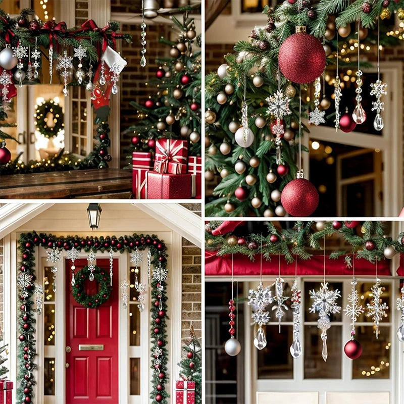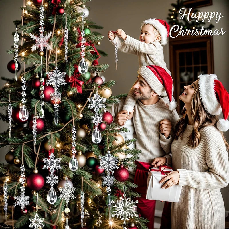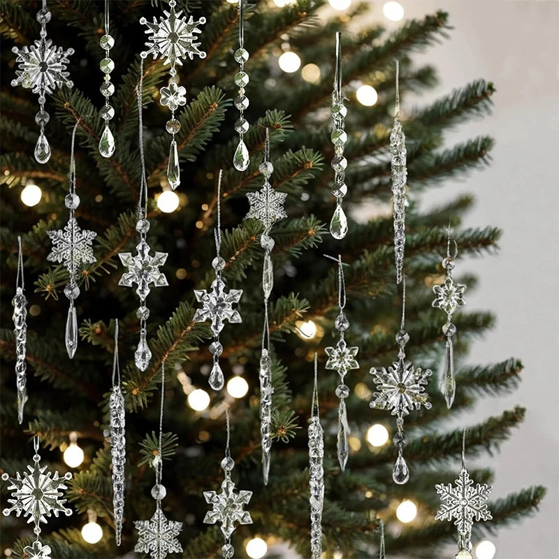 1/5Pcs Acrylic Snowflake Simulation Ice Pendants Xmas Tree Hanging Ornament 2024 Christmas Home Decorations New Year Gift 2025