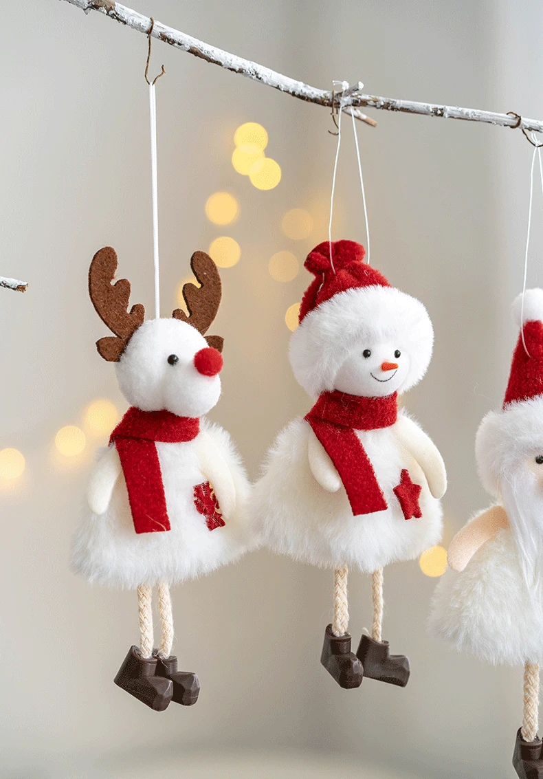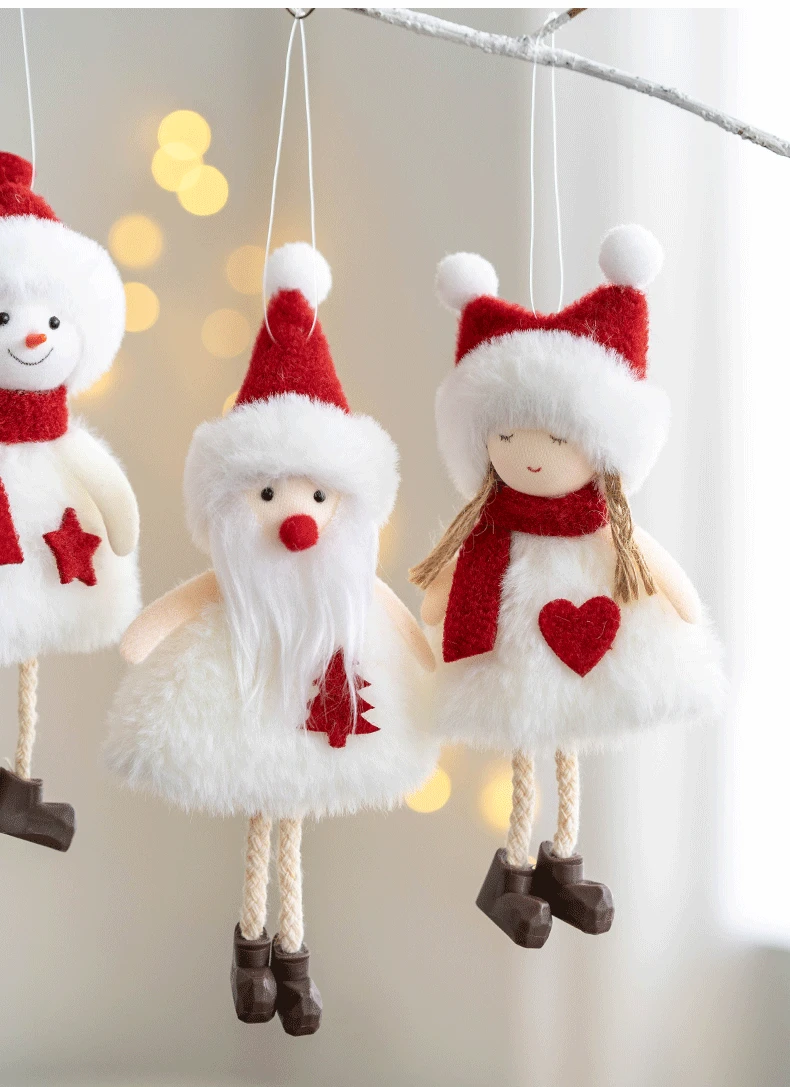 2023 Christmas Decoration Plush Little Doll Fabric Santa Claus Snowman Elk Girl Christmas Tree Pendant Home Party Decor 2024