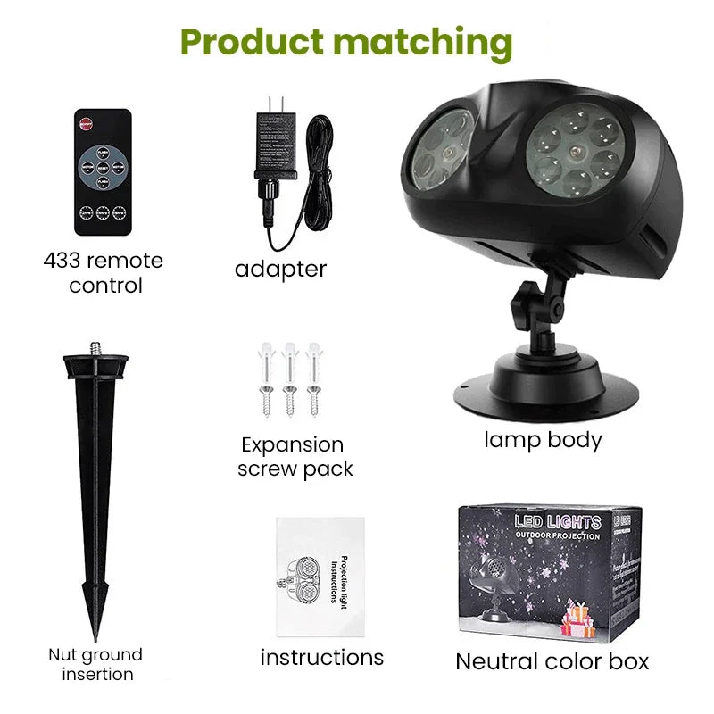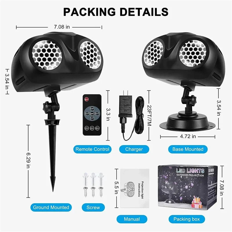 2. The Snowflake projector has a clearer and larger field of view: sharper and larger than other snowflake lamps, up to 600 square feet in area, completely upgraded internal structure, after countless experiments with wide-angle lens refraction, the LED light can be fully projected to get the clearest snowflake and projection area up to 600 square feet, and uses ultra-silent motor drive box The telescope rotates, so the snowflakes will really fall naturally.