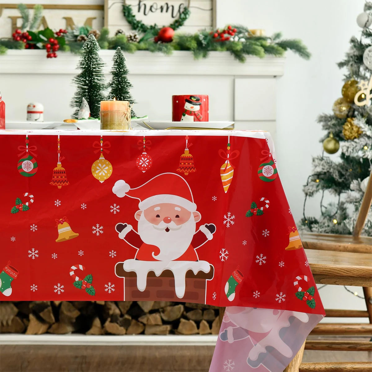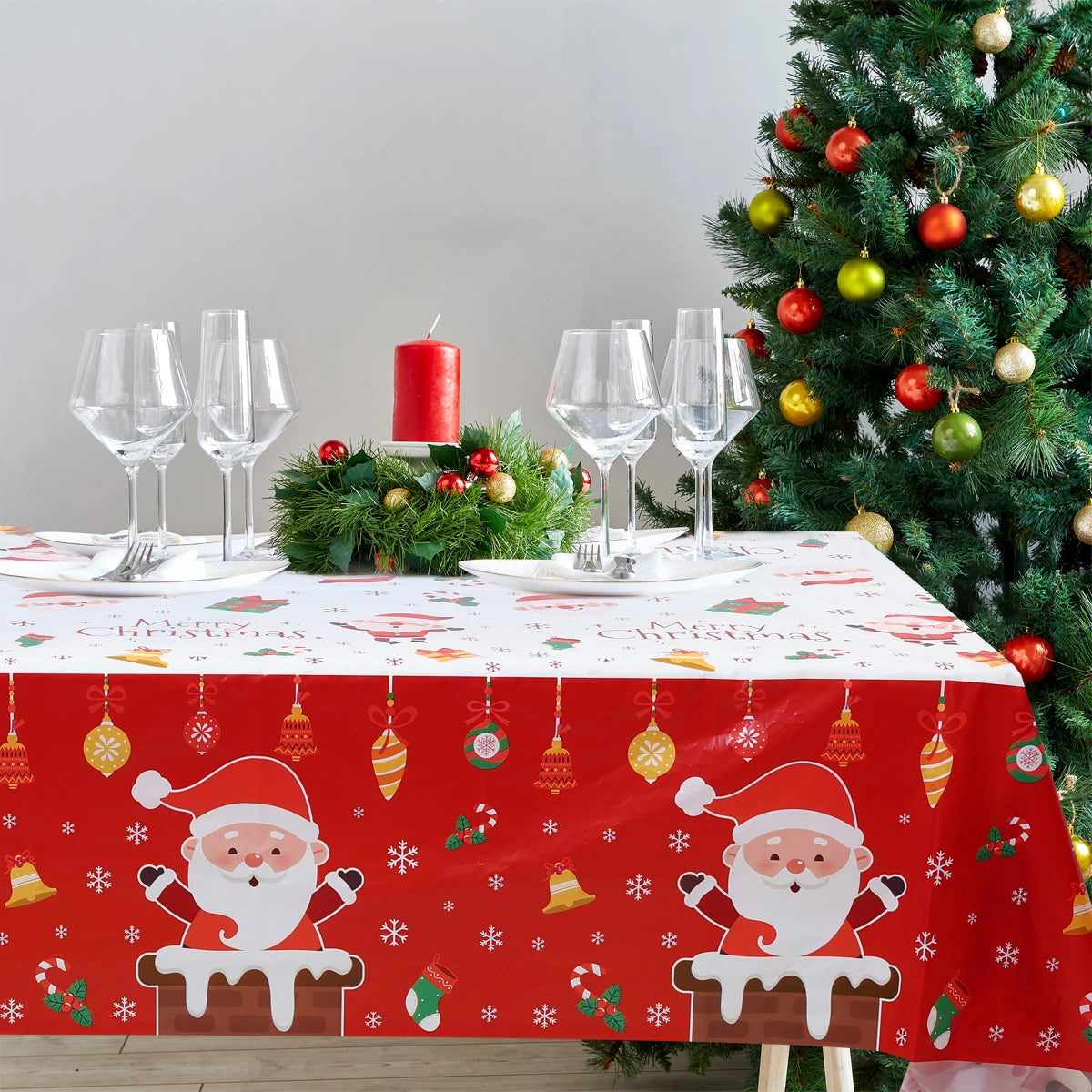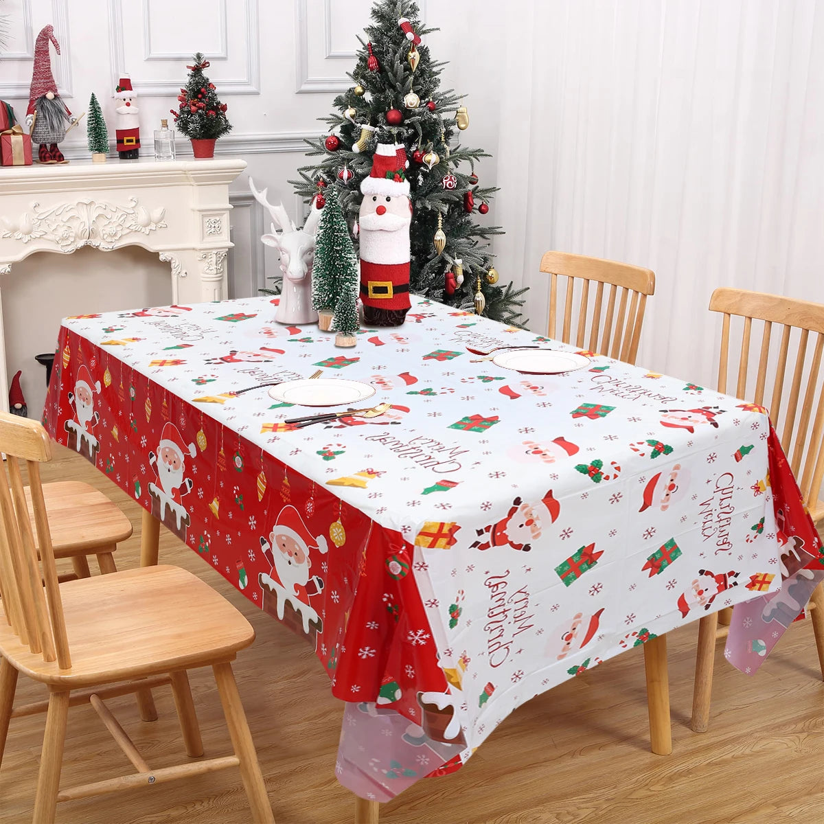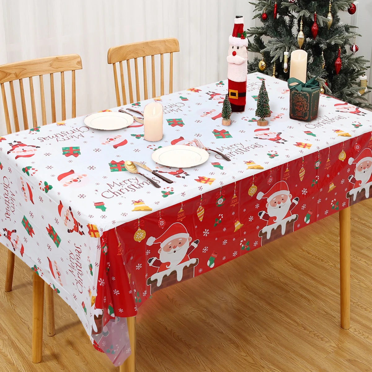 Christmas Disposable Plastic Tablecloth Christmas Decorations for Home 2024 Xmas Table Cover Navidad Natal New Year Gifts 2025