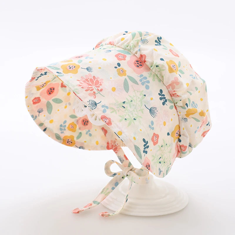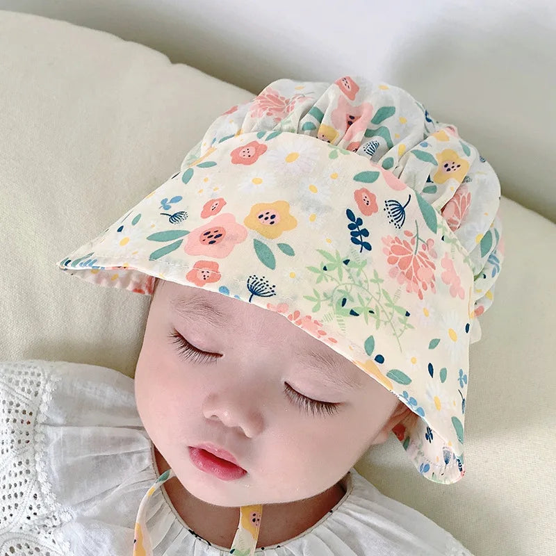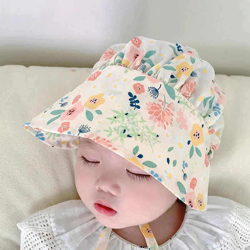 Cute Baby Girls Sunhat For 3-20M New Summer Thin Print Princess Bucket Hats Sunshade Peaked Cap Outdoor Palace Hat Korean Style