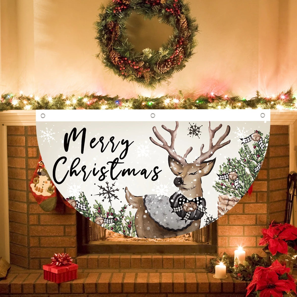 Merry Christmas Fan-shaped Banner Christmas Decoration for Home 2024 Xmas Party Decor Ornament Navidad Natal New Year Gifts 2025