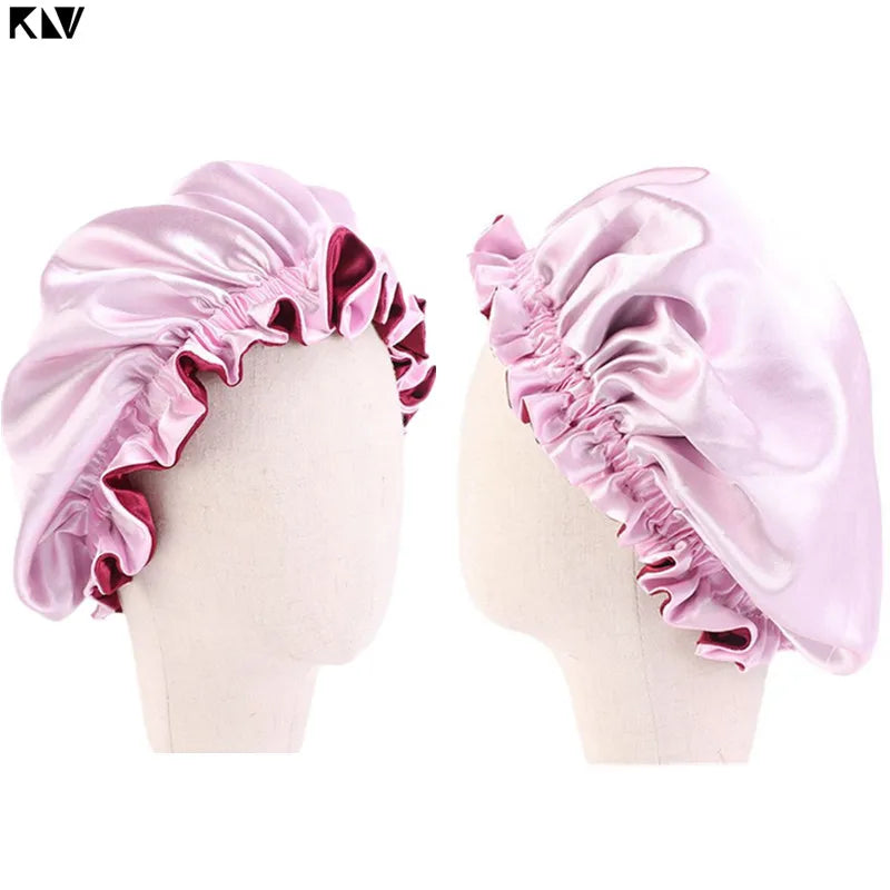 New Baby Silky Satin Bonnet Double Layer Adjustable Sleep Cap Girl Night Turban Children Solid Color Cute Hat Fashion Baby Cap