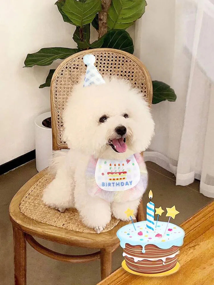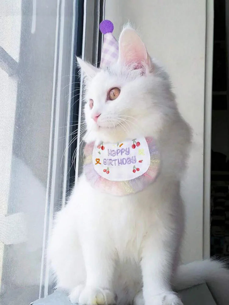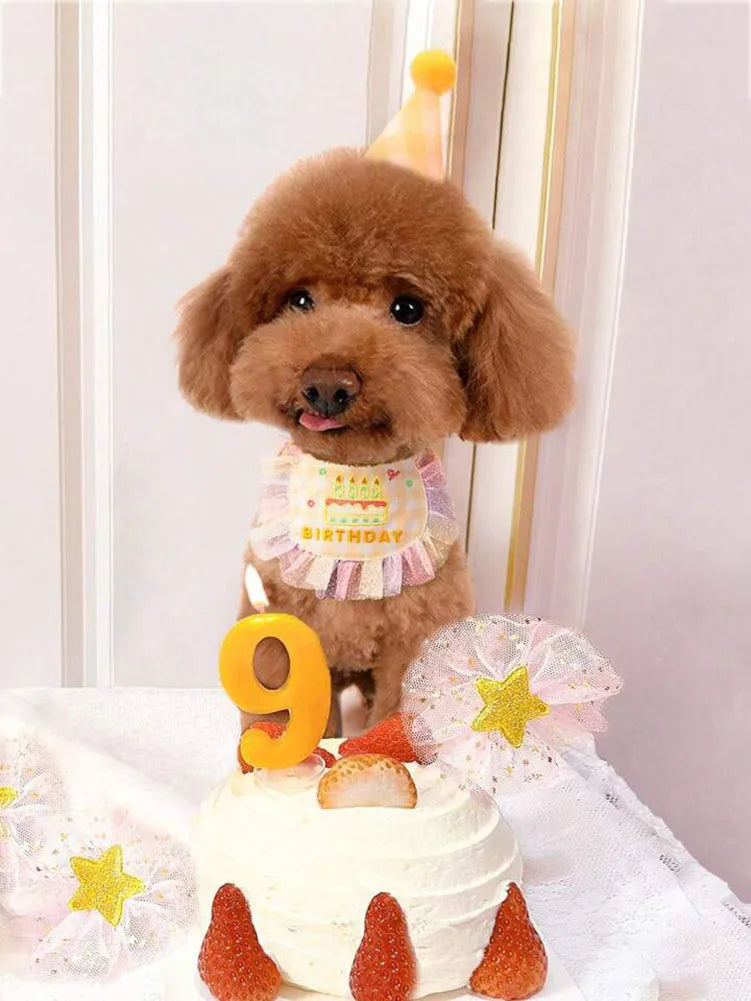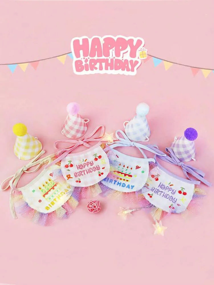 Pet Birthday Bib and Party Hat Cat Puppy Lace Saliva Towel Mini Doggy Bandana Scarf Dog Birthday Dress Up Supplies