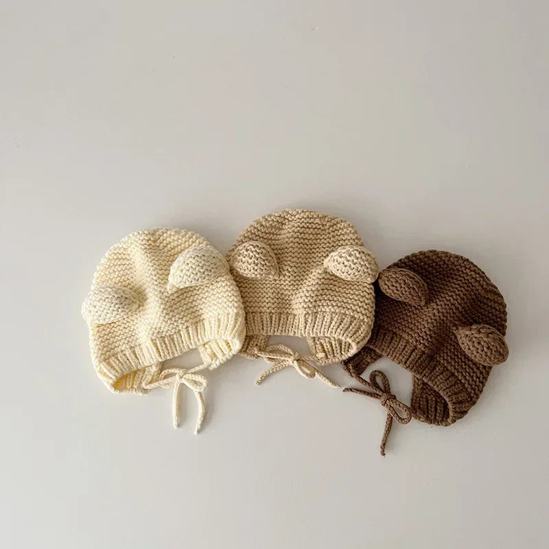 Sweet Newborn Beanie Kawaii Cartoon Bear Ear Crochet Bonnet for Baby Boy Girl Autumn Winter Warm Hat Toddler Photography Props