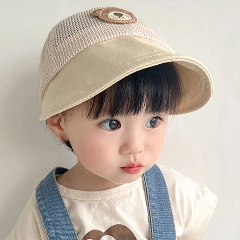 Wide Brim Kids Sun Hats Summer Thin Mesh Breathable Boy Girls Peaked Hats Children Baby Cartoon Bear Korean Panama Fisherman Cap